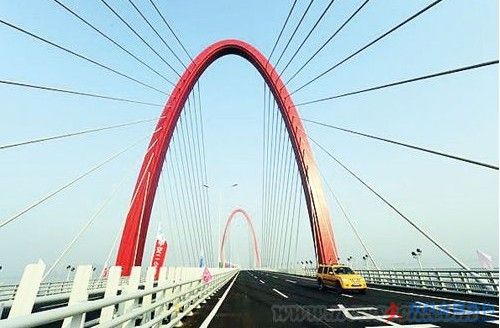1月18日,杭州市之江大橋(又稱錢江七橋)正式通車,該橋為杭新景高速公路的延伸線項目,連接杭州市濱江和之江兩個區(qū)塊。 之江大橋全長4.7公里,為空間雙索面拱形鋼塔斜拉橋,塔高90.5米,主橋?qū)?0.5米,被譽為“錢塘之門”,是目前國內(nèi)同類橋梁中跨度最大、塔高最高、橋面最寬的大橋。