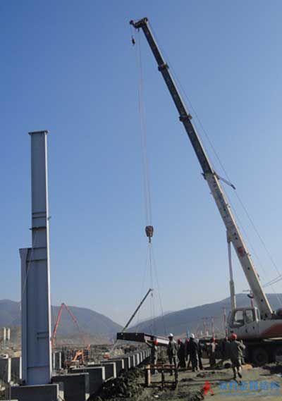1月10日上午10點,隨著第一根構件平穩(wěn)精確地落樁,標志著云南建工鋼構公司新年第一個工程順利開工。該公司黨委副書記陸朝富出席開工儀式。 云南云鋁瀝鑫鋁業(yè)有限公司年產15萬噸交通用鋁型材項目土建工程Ⅰ標段,位于麗江市金山鄉(xiāng)文化村附近,工程內容包括:生產主車間A-B跨、槽大修車間、10KV配電室、三個通廊等工程的土建、鋼結構的制作安裝。主要為A—B跨生產主車間為單跨雙層廠房,跨度為27米。車間長約1069米,柱間距6.6米。焊接鋼結構是以板材為主的制作構件,型鋼鋼結構是以熱軋型鋼為主的制作構件。屋脊標高17.725米。鋼柱采用焊接工字型實腹式截面柱。屋面梁采用焊接工字型實腹式變截面梁。計劃工期為236日歷天。 第二天上午,陸朝富還深入到公司在建項目大理鶴慶藥師佛工程,看望慰問項目職工。