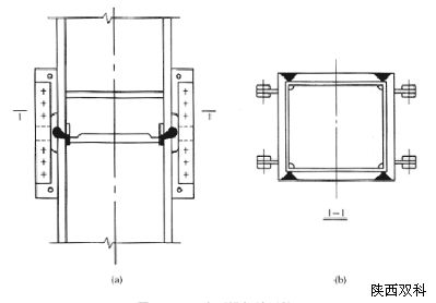 鋼粱:鋼梁的種類較多,有普通鋼粱、吊車粱、單軌鋼吊車梁、制動(dòng)粱等。截面以工字形居或用鋼板焊接,也可采用桁架式鋼梁、箱開梁或貫通型粱等。如圖是工字形梁與箱開柱的連接圖。