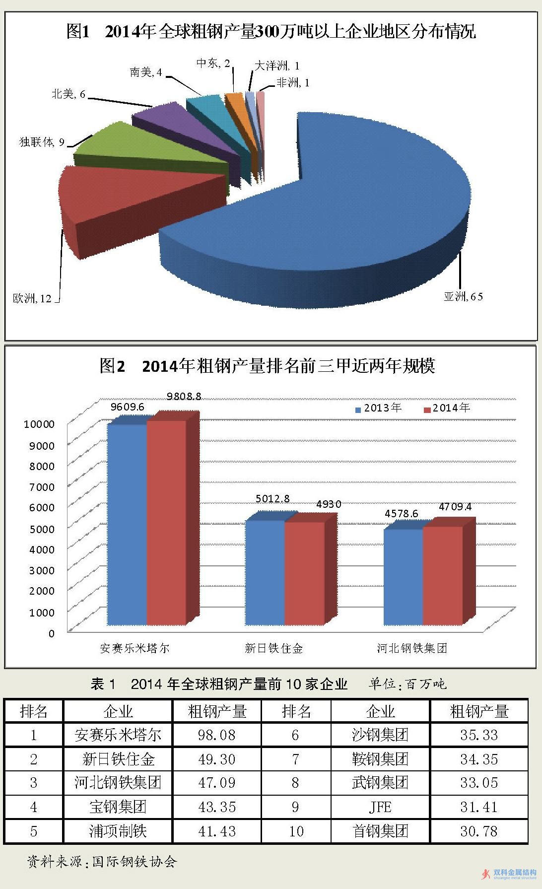 進(jìn)入《2014年世界主要鋼鐵企業(yè)粗鋼產(chǎn)量排名》前十名的其他鋼鐵企業(yè),與2013年上榜企業(yè)相同,只是排名順序略有變動(dòng)。