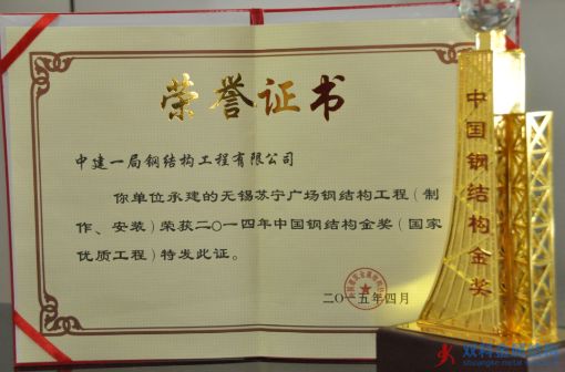 中建一局鋼構(gòu)憑無錫蘇寧廣場項(xiàng)目再獲“中國鋼結(jié)構(gòu)金獎(jiǎng)”